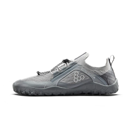 A knit upper and sock bring flexibility and protection. A quick-lace system means easy adjustments. And a thin Firm Ground sole balances barefoot sensation with grip, feeling fast on varied hardpack terrain, building natural strength with every step.